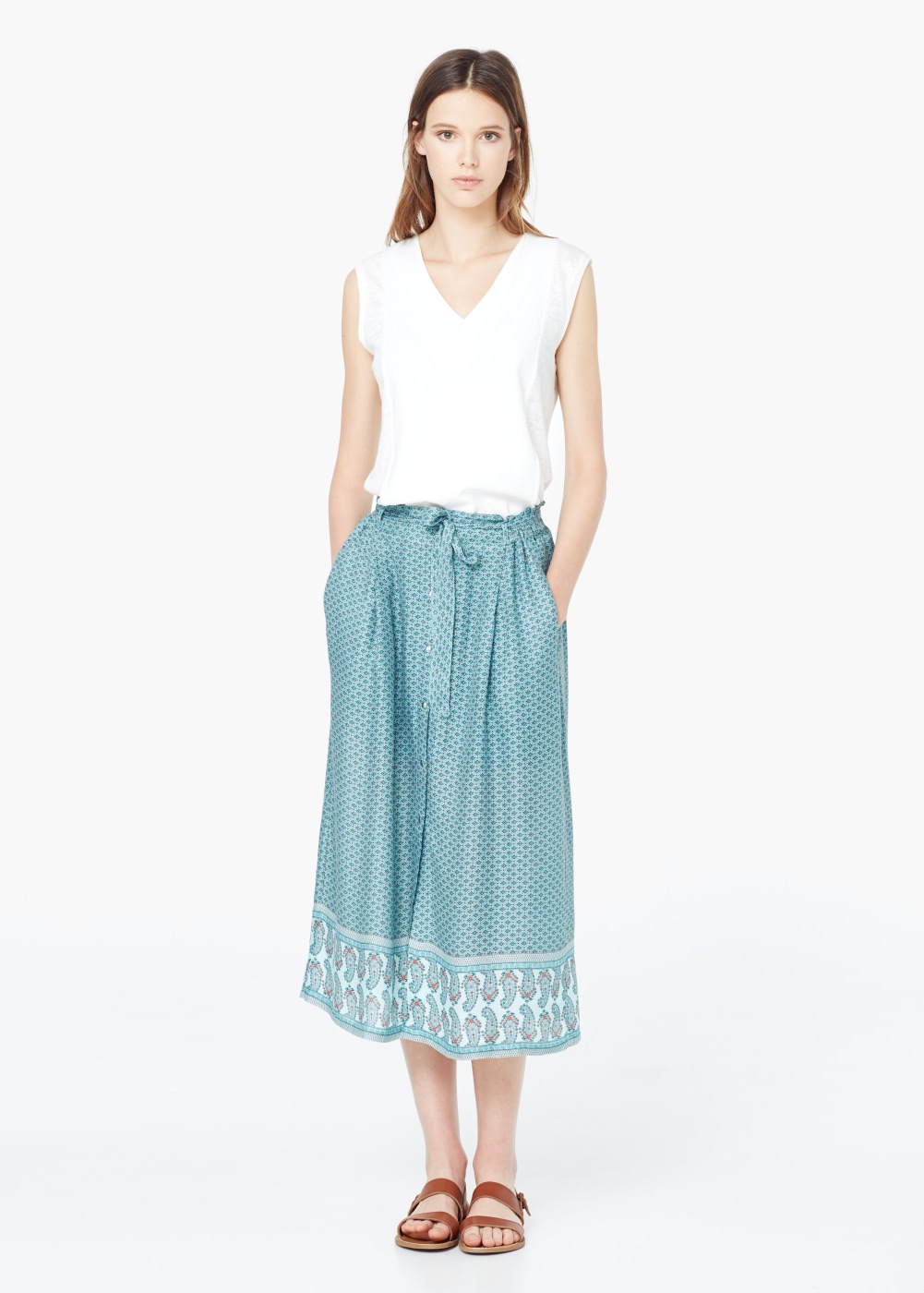 Esta temporada estamos viendo todos los tipos de largos de faldas, desde la muy mini hasta la super maxi, pero la estrella es la midi. Recta o con vuelo se ha ido haciendo un hueco poco a poco, hasta ser ya un imprescindible. Te aconsejo que te hagas con una si no la tienes todavía, es una prenda que dará mucho juego en tu armario, tanto para día o noche y perfecta para trabajar. Le puedes dar un estilo diferente según el calzado con el que la combines.